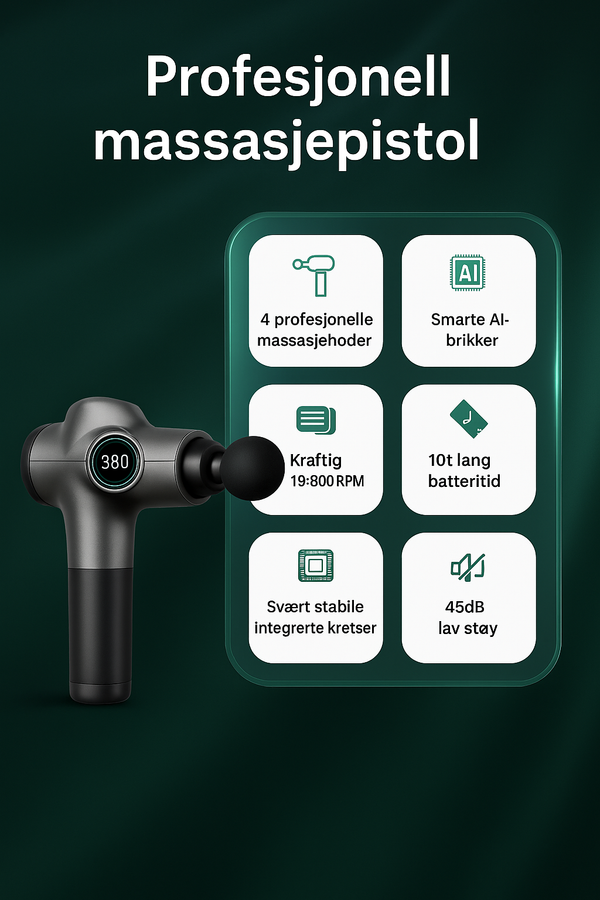 Vårt massasjeapparat gir deg rask lindring fra muskelsmerter, forbedrer sirkulasjonen og gir deg energi til å møte dagen med ny kraft.